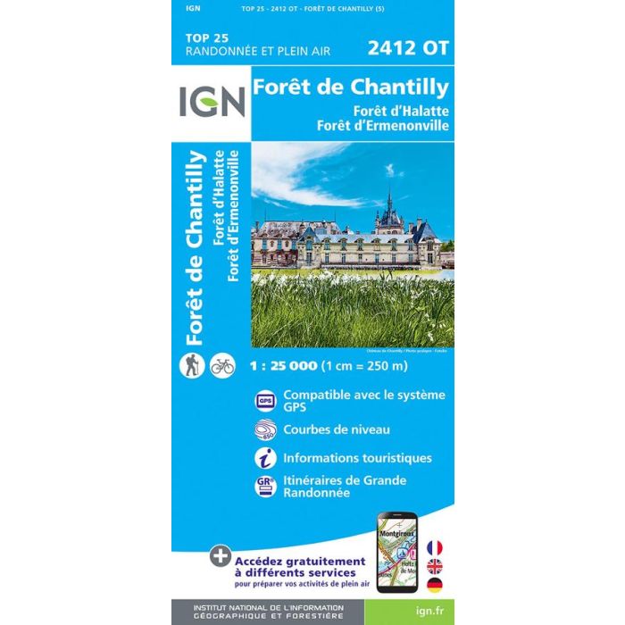 Carte IGN 2412OT Forets de Chantilly d'Halatte et d'Ermenonville
