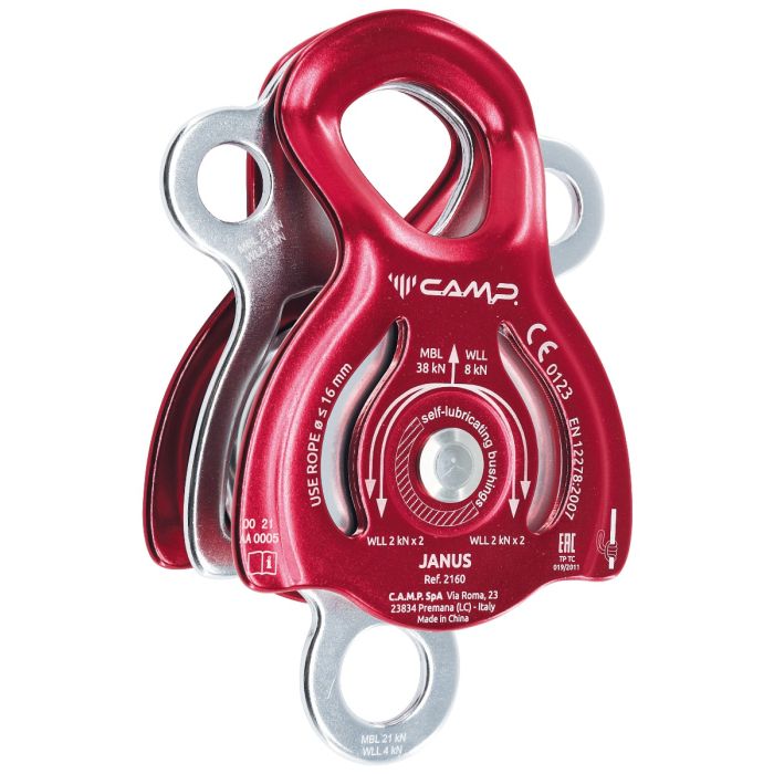 La poulie Janus de Camp est une double poulie de haute résistance. Conçue pour la réalisation de mouflages et de manoeuvres complexes.