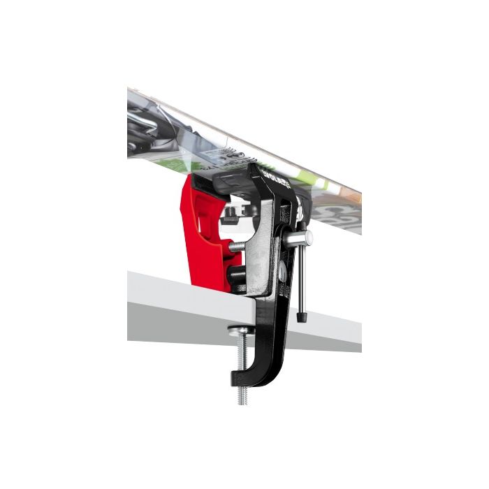 Ce support de travail permet de ne plus enlever la pince centrale pour affûter notre ski sur l'angle ou pour utiliser le fer à farter.