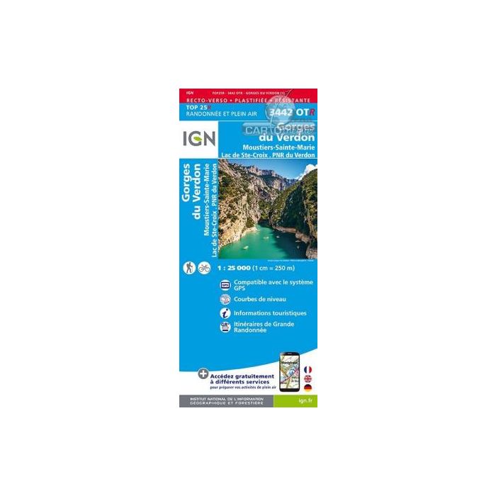 Carte IGNGORGES DU VERDON MOUSTIERS SAINT MARIE RESISTANTE 3442OT
