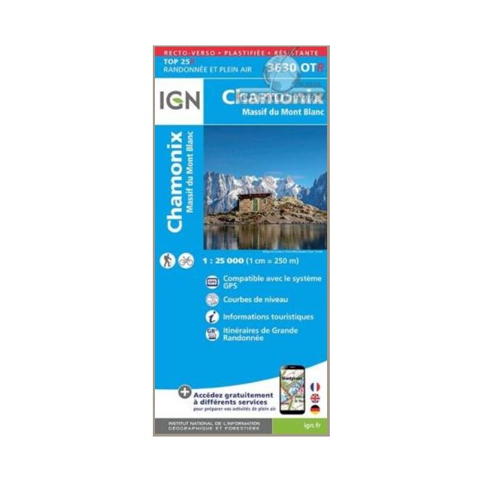 Carte IGN IGTR3630OT CHAMONIX MASSIF DU MONT BLANC RESISTANTE